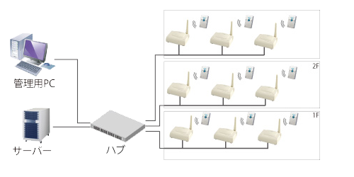 ■有線LANケーブルでハブに接続し、管理用PC、サーバーとネットワークを構築